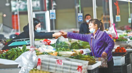 市民在问津菜场菜摊买菜。 长江日报记者 许魏巍?摄