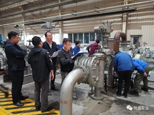 近日,海上平台项目最终用户,设备处、设计院及海洋厂相关专家组莅临河北恒盛泵业指导验收工作,公司市场开发部、技术部及生产部等相关领导陪同参与项目的验收,并召开项目验收会议,会议上公司领导对项目完工情况进行了详细汇报,向专家组展示了原油外输泵撬块各性能试验指标,及相关的完工资料,专家组认真进行审核。
