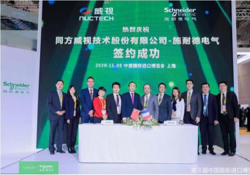 在第三届中国国际进口博览会期间,全球能源管理和自动化领域的数字化转型专家施耐德电气宣布与全球知名的安检解决方案提供商同方威视技术股份有限公司达成战略合作伙伴关系。