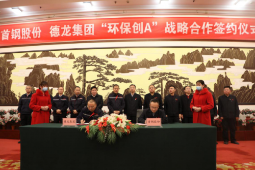 携手绿色发展,共建生态文明。11月12日,德龙集团与首钢股份在唐山迁安签署“环保创A”战略合作协议。德龙集团、新天钢集团董事长丁立国,首钢股份公司党委书记、董事、总经理刘建辉出席签约仪式并致辞,鑫诚钢铁董事长王洪岐,德龙集团执行总裁、新天钢集团副总裁、德龙钢铁公司党委书记、总经理刘国旗,德龙集团、新天钢集团及各实体公司主要领导和首钢股份中高层领导共同参加了签约仪式。签约仪式由首钢股份公司副总经理孙茂林主持。