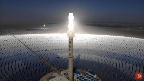 首航高科敦煌100MW熔盐塔式光热电站位于敦煌市光电产业园区,是国家首批光热发电示范电站之一,该项目于2018年12月28日并网发电,配置11小时熔盐储热系统,可24小时连续发电,设计年发电量达3.9亿度,每年可减排二氧化碳35万吨,释放相当于1万亩森林的环保效益。(邱 亮)