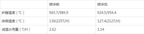 综上所述,通过高温喷涂减轻了水冷壁的腐蚀和磨损程度,保持了水冷壁的清洁度,减轻了受热面的结焦积灰及硫化物硫酸盐的存在,增大了水冷壁的传热效果,使炉内水冷壁的吸热量大大增加,从而增加了饱和蒸汽的产量,使得主汽温度降低,减温水使用量大大减少;由于炉内吸热量的增加使得燃料的有效利用热量增加,增强了换热效果使得烟气温度降低,因此炉膛温度和排烟温度才出现了下降,提高了锅炉的热效率。