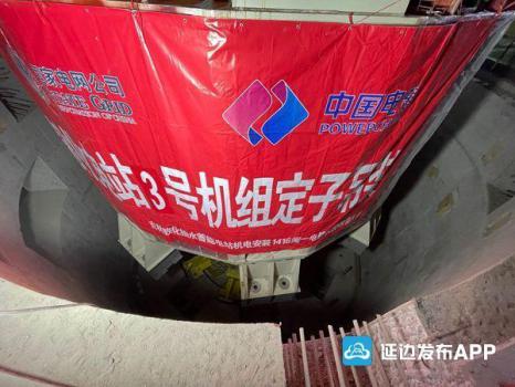 今日15时,吉林敦化抽水蓄能电站3号机组定子吊装。定子吊装使用厂供专用工具配合两台275t桥机进行吊装,整体起吊重量约416.91t。定子吊入机坑后,以水轮机基准高程为基础使用楔子板进行高程微调,并根据水轮机基准中心悬挂钢琴线进行中心调整。定子调整完成后,进行定子基础混凝土浇筑。