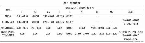 在图1中,使用双头螺柱将排气歧管固定在气缸盖上,双头螺柱及螺母使用的材料均为40Crl0Si2Mo,设计耐热温度都为700℃,螺栓机械性能等级为10.9级,六角法兰面螺母机械性能等级为10级。材料的耐热性能与成分关系很大,表3为上述几种材料的成分对比。