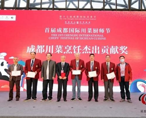 作为“美食之都”的建设者,川菜名厨功不可没,现场也颁发了“成都川菜烹饪杰出贡献奖”、“成都川菜烹饪青年名厨”等奖项。
