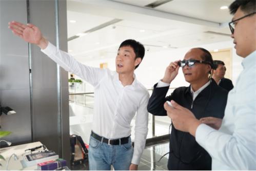 吴晓军书记体验影创MR智能眼镜“鸿鹄”