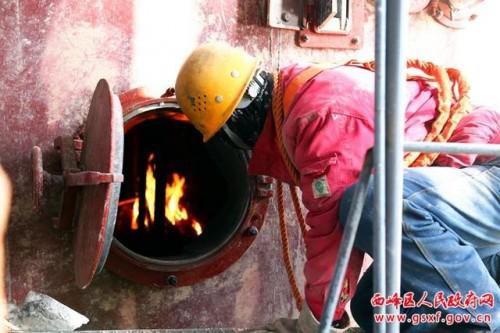 12月10日下午3点,笔者在西峰区北区热源厂改扩建项目施工现场看到,1号锅炉炉膛内已经点火烘炉,火势在炉膛内蔓延。