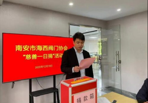 为大力弘扬社会主义核心价值观,倡导乐善好施、守望相助的中华民族传统美德,南安市海西阀门协会积极响应市委、市政府号召,12月19日上午,南安市海西阀门协会在协会办公室组织会员开展“大爱南安 慈善有我”慈善“一日捐”活动。活动由协会秘书长陈新刚主持。