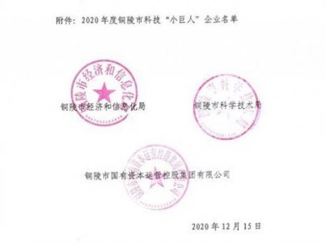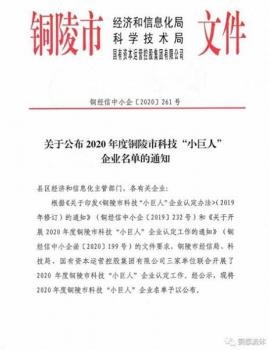 由铜陵市经信局、科技局、发展投资集团公司三家单位联合开展的2020年度铜陵市“科技小巨人”企业认定工作,铜都流体子公司英诺威阀业有限公司榜上有名。