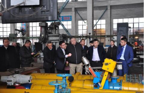 2012年,王浩院士(右二)、中国水利水电科学研究院教授杨开林(右一)在南方阀门参与新产品鉴定