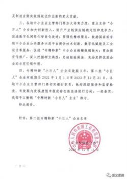 链接小知识:“专精特新”是指具有“专业化、精细化、特色化、新颖化”特征。国家专精特新小巨人企业是是专注于细分市场、创新能力强、市场占有率高、掌握关键核心技术、质量效益优的国内排头兵企业。