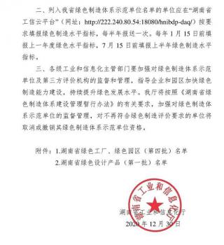 2020年度湖南绿色制造体系示范单位
