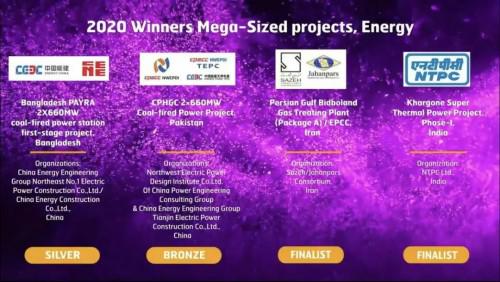 △2020年10月,孟加拉帕亚拉燃煤电站项目荣获国际特大型项目管理银奖,该奖项是2020年度IPMA能源行业的最高奖。