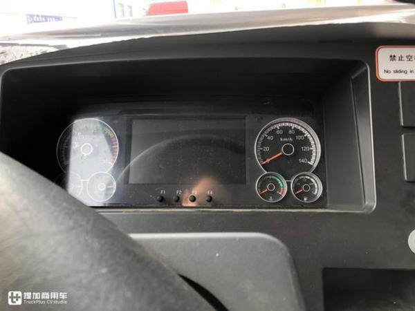 机械式仪表盘采用了左右清晰明了的对称布局,左侧转速表、电压表、气压表,右侧为时速表、水温表、油量表。居中位置的采用了泵送车辆专用的大尺寸彩色液晶显示屏,可以及时了解诸如发动机、储气罐等部件的运行情况。