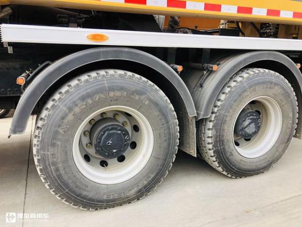 双转向车桥采用了尺寸为385/65R22.5尺寸的子午线真空胎,超宽体轮胎确保车辆在复杂路况下具备更强的抓地力,提高在非铺装路况下的稳定性。