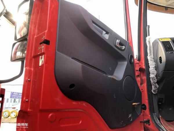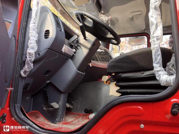 这款专用工程车辆并未采用与公路物流运输车型相同的模块化外观,而是采用了更具专业化气息的锋芒设计,驾驶室整体尺寸与三大进口欧系车型基本一致,紧凑型设计更多为车辆在复杂路况下通行带来先行条件。
