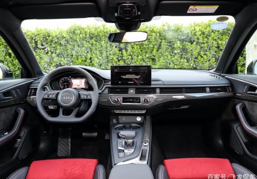 内饰一改那老气横秋的设计,在科技感、运动感、豪华感和舒适感方面下足了功夫。首先映入眼帘的是它12.3英寸的全液晶仪表,能够显示更加直观的车辆信息,还支持经典、动感、运动驾驶模式;10.1英寸的悬浮式中控屏,屏幕分辨率达到了1540*720像素,并带有声音反馈、Audi Connect,可以让手机和车机系统随时联动,还能预装很多常用的APP,体现出奥迪虚拟座舱的高逼格感。大面积真皮材质、Alcantara面料的交替铺陈,再加上平底式多功能运动方向盘、换挡拨片和造型别致的换挡手柄,仿佛坐进了奥迪RS4的座舱内,运动感爆棚。5个真皮座椅都带有头枕,前两排的运动座椅还有着更好的包裹性和支撑性