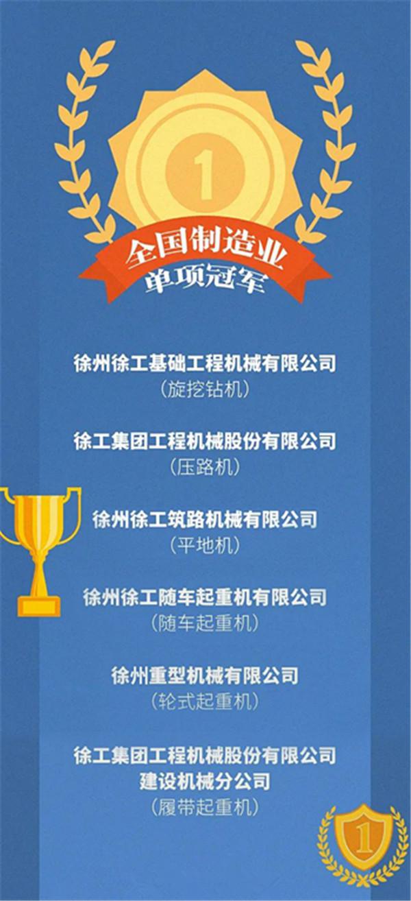 截至目前,作为中国制造企业第一方阵和排头兵的徐工,已先后六次获得制造业单项冠军的殊荣。