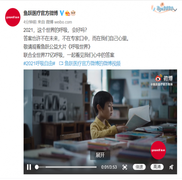 今天,鱼跃医疗官方账号发布一条令人泪目的公益电影。