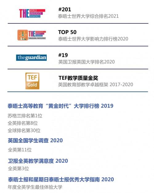 英国邓迪大学成立于1881年,位于苏格兰邓迪市,位居泰晤士世界大学影响力排行榜TOP50、泰晤士世界大学综合排名前两百。是一所世界一流的著名公立综合性大学。从创办以来大多数历史时间里,邓迪大学是圣安德鲁斯大学联邦的一部分,1967年学校大举扩建后独立。但是保留了它的许多古老习俗和管理结构。独立后它逐渐成长为一个国际有名的教育研究中心。邓迪大学在生命科学、教育、医学、金融、法律、会计、管理、材料、工程、建筑等学科上都享有世界级的声誉。