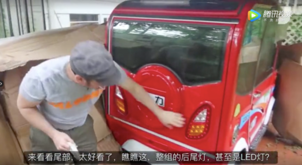 经过几个月的等待,他终于喜提爱车,急不可待地录下开箱过程。看到LED后尾灯、换气风扇、彩色后视摄像头等配置一应俱全,大洋彼岸的美国青年也成了老头乐的拥趸。