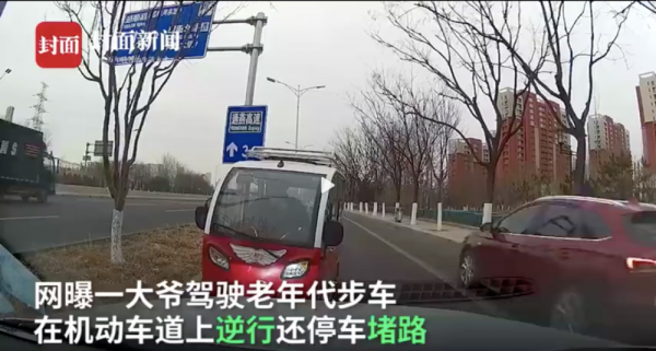 1月14日,北京通州一位驾驶“老头乐”的大爷在机动车上逆行。/封面新闻
