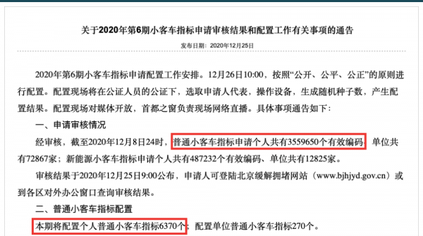 在北京,如果不选择老头乐,那就只能本本分分地买一辆车。根据统计,2020年北京市全年的买车摇号概率大约在0.03%,也就是说1个买车指标,会有大约3000人同时竞争。2020年12月25日,北京市最后一期购车摇号指标公布,申请人数高达300多万,然而名额只有仅仅6370个。
