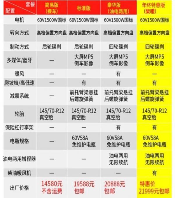 款式可以任君挑选,实惠价格也具备吸引力。不同车型,价格从几千元到上万元不等,但即便是选上最奢侈的配置,一辆车的价格也大多在两万元左右。空调、GPS定位、倒车雷达,甚至减震系统、车载充电器,汽车该有的,老年代步车也几乎都有,花费却只有前者的十分之一。