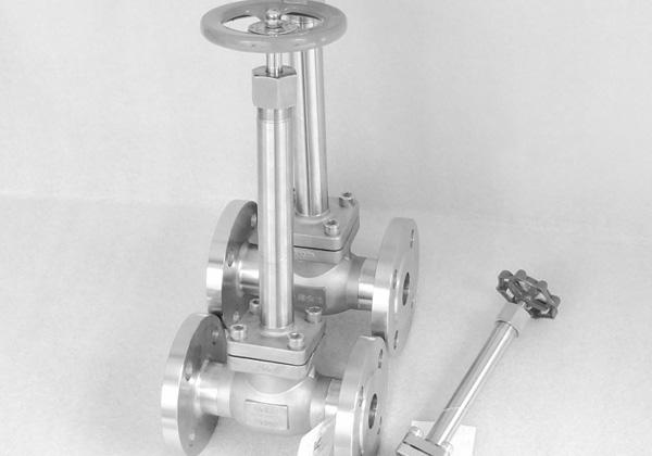 长轴低温截止阀由阀体,阀瓣,阀杆,阀盖,手轮,密封件组成,阀盖采用加长颈结构;其特征是填料密封函采用上填料和下填料组成双重压紧密封结构,介质流道方向采用低进高出,阀体进口通道在阀座密封面的下方,阀体出口通道在阀座密封面的上方。低温截止阀在系统首次预冷后请检查螺栓螺母及填料压帽等紧固件的锁紧状况,如出现微量泄漏,系由材料遇冷收缩而引起的,将紧固件在冷态下紧固即可,产品适用范围:气体液化、液氧、液态烃和液化天然气、液氮、LNG系统。