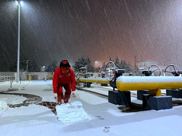 图为2月25日凌晨,山东济南地区降下了2021年的*场瑞雪,天然气分公司山东管道公司一线员工在雪中巡检输气设备。(段红云 曾义根)