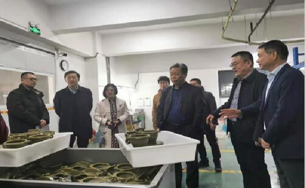 信泰阀门张德飞总经理对兰理工泵阀研究院一行的到来表示热烈的欢迎,他首先介绍了企业的发展历程、经营现状、产品特点、研发需求等,并带领曹驰一行等参观了信泰阀门生产车间和铸造车间,详细介绍了企业各种在制造的产品及铸造工艺流程,张德飞希望依托学校优势资源,加强校企合作,共同助力解决企业实际问题,进一步提升企业科研能力。