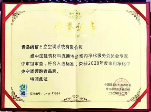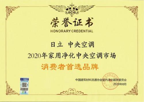 与此同时,为了表彰日立中央空调在解决室内空气污染问题等方面做出的榜样和突出表现,中国建筑材料流通协会室内净化服务委员会为日立中央空调颁发了《2020年家用净化中央空调消费者首选品牌》证书。