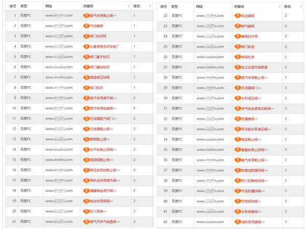 下图是XX阀门企业整站优化的部分效果图,整站优化有超过100个词已上百度首页。