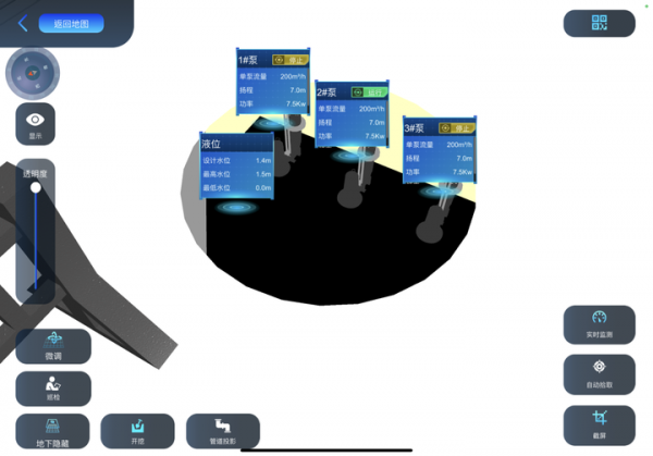 运检人员只需手持一台移动设备,扫描二维码或直接GPS定位,便能进入泵站、井盖等具体地点,所有设施设备以三维图形立体呈现,甚至连“地下隐藏”的水泵,都能点击“开挖“键,检查其运行状态。