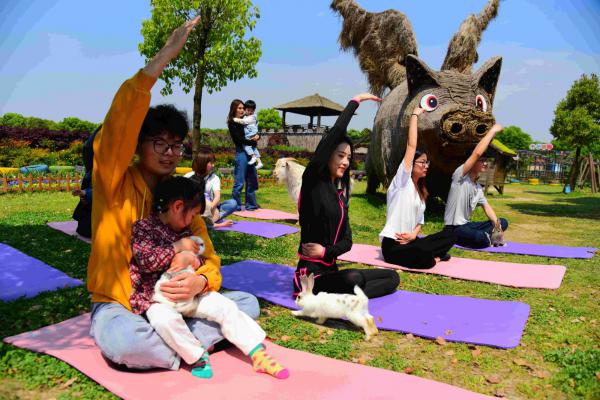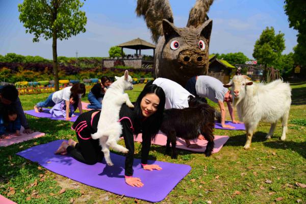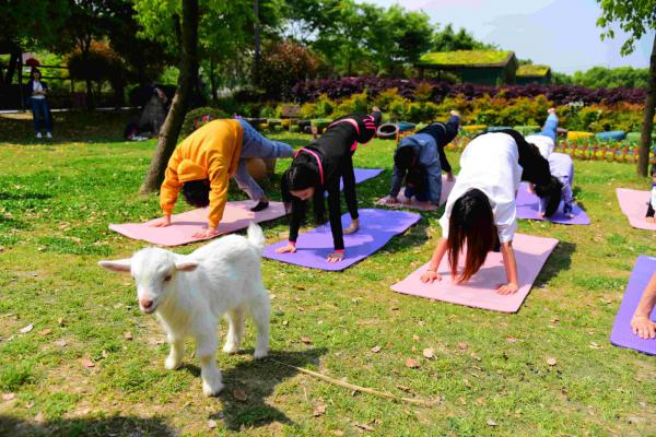 4月21日,“五一”国际劳动节前夕,桐乡猪舍里举办了一场妙趣横生的“山羊瑜伽”运动会,现场游客和山羊等小动物共同挑战高难度瑜伽动作,用趣味休闲的方式迎接 “五一”国际劳动节。