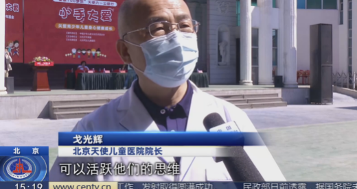 北京天使儿童医院戈光辉院长表示:关心儿童健康成长是全社会共同的责任,作为专业的儿科医院更是不可或缺。北京天使儿童医院自成立以来积极履行社会公益职责,关心关怀关注儿童身心健康,通过专业看诊、健康义诊、公益讲座、基金援助、捐献物资等形式给予儿童心理行为身心发展更多关爱。