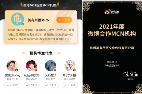 在流量端板块,科丽集团旗下还拥有包括微博、快手等多个平台在内第一批资质行业白名单的MCN和服务机构,拥有包括 虫虫、颖儿、韩安冉等在内的众多第一梯队的独家合作约,逐步完成了涵盖了上中下各个医美生态产业链的集成闭环。