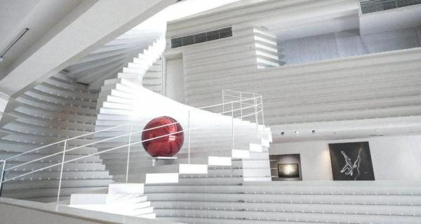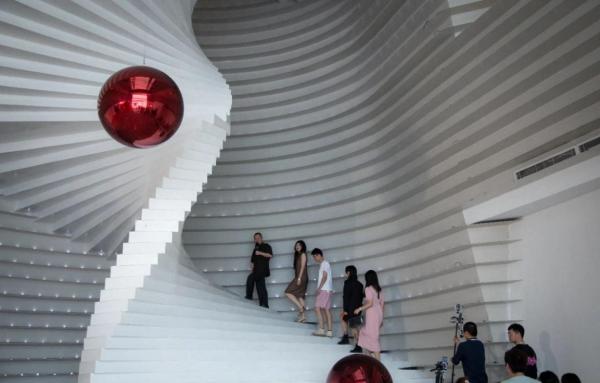 承载了这场特殊展览的黄盒子美术馆成立于两年以前,是由青岛中纺亿联时尚产业投资集团投资建立的,是坐落于青岛的第一座当代美术馆。美术馆大厅设计独特,它本身看上去像一座巨大的雕塑,一件艺术品,一件大型装置。这样一座气势盎然的美术馆大厅在方位上直面大海,体现出其在发展方向及艺术定位上的包容精神。黄盒子开放展落地到这样一个开放、包容的场景和环境中,也寓意着蛟龙入海的东方精神,展览与展馆之间构成一种相互呼应的关系和状态。
