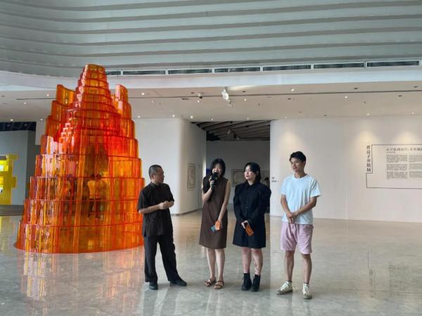 展览开幕现场由总策展人沈其斌先生以及黄盒子开放展策展团队中的史郁斌、隋萌、武琼作为直播嘉宾为线上观众导览并深度讲解了本次展览展出的上千件当代艺术作品。同期,一系列围绕黄盒子开放展的公教活动也将陆续展开。