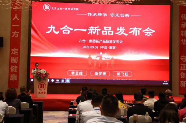 2021年9月8日,正值莘莘学子新学年开始之际,九合一新品发布大会在山东蓬莱宝龙艺珺大酒店隆重召开。此次会议以“传承精华,守正创新”为主题,正式发布了以九合一品牌体质系列膏方为主的新一代产品。国家一级演员、著名表演艺术家杜旭东老师,中央国家机关书法家协会副主席、中国画院副院长唐柏飞老师,著名太极大师孔庆乐老师,快乐营销创始人、著名营销培训专家刘长清老师,著名小提琴演奏家白亮先生,中国美术家协会会员、著名画家吴彪先生,九合一集团总裁郑国卿先生,九合一学术中心主任姚雪霞老师、各地区业务经理、重点客户代表、医生代表出席了本次发布会,与来自全国各地的同仁齐聚一堂,共襄盛举。本次会议由烟台电视台著名主持人泰山担任主持。