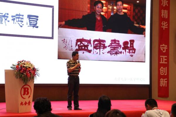 会议开始,著名演员杜旭东老师、中央国家机关书法家协会副主席唐柏飞老师等上台发表了重要讲话。几位嘉宾领导在致辞中都对祖国的中医药给予了高度的评价,并强调了人民健康事业的重要性;对于此次九合一新产品的发布,几位领导也表达了真诚的期待和深切的祝愿,希望九合一能推出更好的产品和服务,为广大人民群众增益健康。