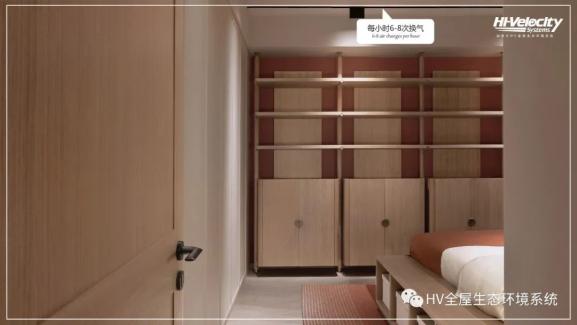 主卧带有书房,业主大多时间会在这里翻阅书籍查找资料,加上业主年近六旬,所以房间里对温度湿度的要求相当高,加拿大HV系统恒温恒湿恒氧的高标准正好符合此项需求。在HV系统营造的室内环境里,垂直温差小于1℃,可避免老年人出现忽冷忽热的不舒服体感;而经过HV系统独立湿度调节器自动调节后的室内湿度,夏度湿度低于60%,冬季湿度大于30%,可以很好的防止书籍因室内潮湿出现发霉现象,同时也完全避免了长期居住在潮湿环境中对身体的损害。
