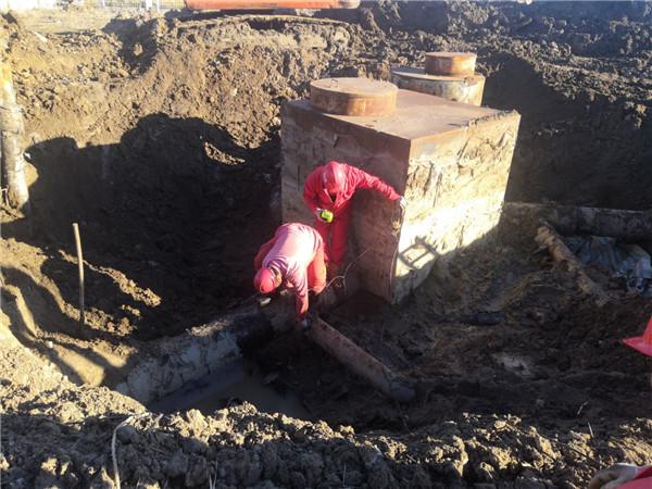 由于施工位置位于地下,因此施工前他们将所要施工的管线全部找出,抽出地下积水,人工配合机械清理操作坑并挖好集水坑,确认好管线切割位置后,清除切割处附近的防腐层,量出管线管径,他们便根据实际管径和管线位置预制好连通管段。