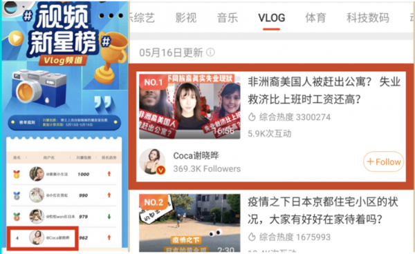 在毛澍凡及节目组其他主创的努力下,节目刚起步的前两个月,发布账号 “@coca谢晓晔”就在微博vlog频道“视频新星榜”中,先后取得了第九名和第四名的好成绩。更有多期节目突破百万浏览量,获得无数网友的热评和点赞。值得一提的是在,发布于5月16日的一期和美国工薪阶层探讨美国受到疫情影响失业率激增的节目,在推出不到24小时的时间内获得了1200万的浏览,并登顶新浪微博平台vlog日榜榜单。