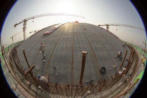 据天津LNG二期项目经理张益公介绍,本次升顶通过精确控制平衡、风机、密封及测量四大关键系统,实现直径88.4米穹顶径向偏移误差不超过3厘米,并使升顶效率显著提高。由于该项目地质条件特殊,项目团队创新采用宽胖型设计方案,显著提升超大型储罐的抗震性能。面对大直径对结构强度和耐久性设计提出的全新挑战,项目采用多项中国海油自主核心技术,为储罐从建设到运营全生命周期的本质安全提供了可靠保障。项目还通过工艺优化,实现桩头预埋板一次成型浇筑,单罐节约灌浆料约23吨,缩短工期8天。