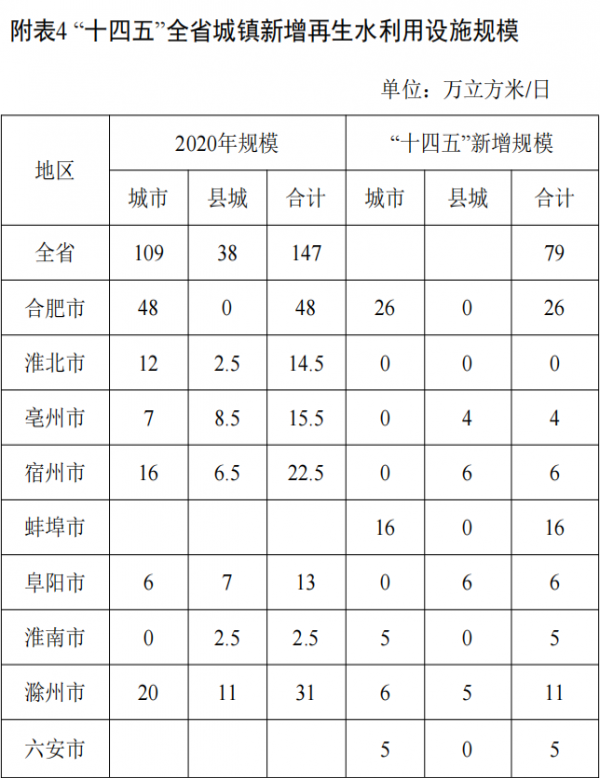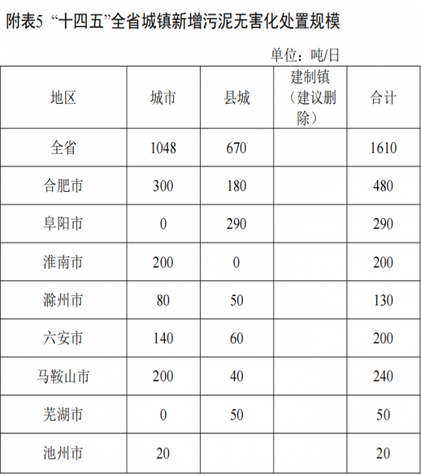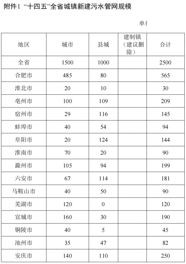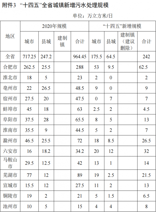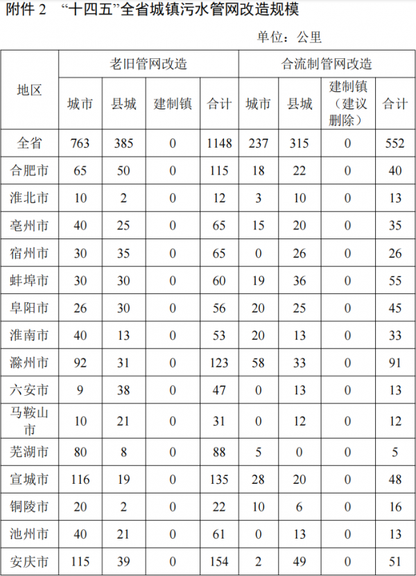 “十四五”安徽省城镇污水处理及资源化利用设施建设项目库