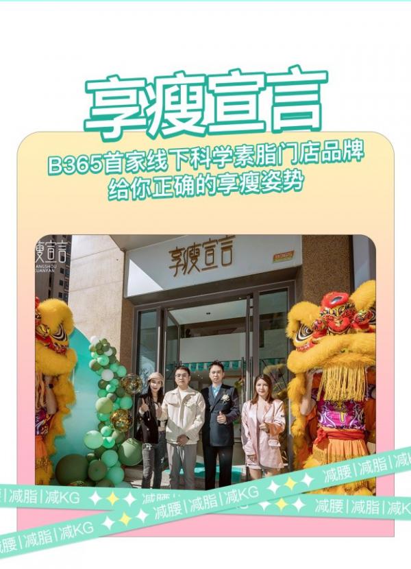 B365革新思维,聚焦科学素脂领域,对大健康时代下的科学素脂做了新的变革,重新打造健康产业下的新生态,线上社交电商“B365品牌系列”+线下实体连锁“享瘦宣言门店”,这一次我们将二者充分融合运营,打造线上平台+线下门店体验服务的新消费模式,为消费者创造造新的消费场景和体验,有趣的场景是能够带来刺激、兴奋的消费体验的,从而实现更广泛、自主的活动,建立更丰富、立体的品牌联想。