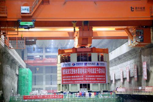 12月15日,历时7个多月的现场叠片组装和试验,山东最大抽水蓄能电站——文登抽水蓄能电站首台机组定子吊装完成。
