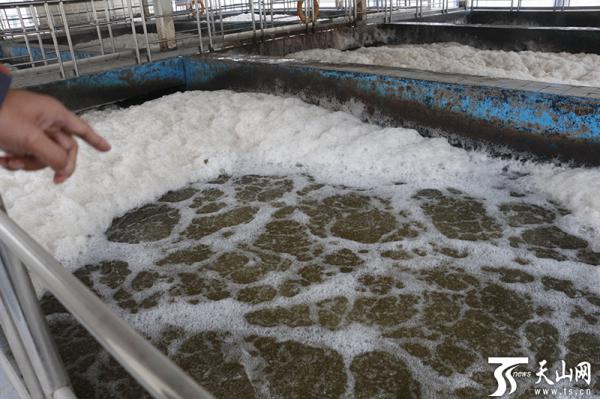 李范岭介绍说,将污水中的氨氮转化为硝酸盐氮,需要消耗大量的氧气,通过鼓风机在池底加氧,让空气与水充分接触。有泡沫,说明水质不好。