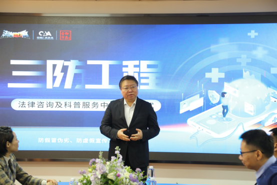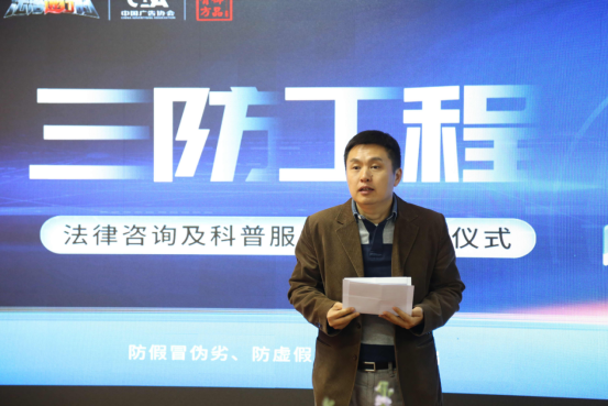 会上,中国广告协会张国华发表了开场致辞,他表示“三防工程”是一项彰显社会正能量、有益于大众消费者的项目,并肯定了御品膏方参与建设“三防工程”的积极作用。他倡导更多优秀的企业和组织积极加入到“三防工程”项目中,为提升自身的行业自律、行业服务质量多做贡献。